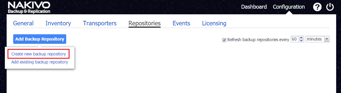 Go toย Configuration >> Add Backup Repository >> Create new backup repository