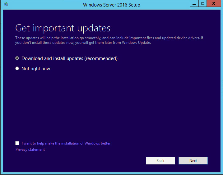 Note I wanted to see how the upgrade handled the forestprep and domainprep since I hadn’t already ran this prior to starting the upgrade. ย Let’s see. ย First thing we are prompted to do is get updates.