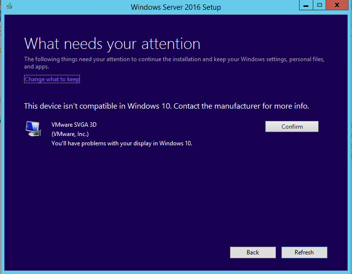 So first thing that is interesting is the warning we have here about the VMware SVGA 3D adapter. ย The upgrade has you Confirm that you want to proceed and then has you do that again as you will see below.