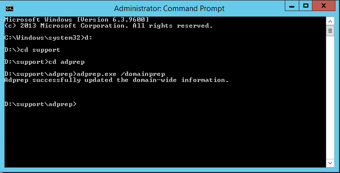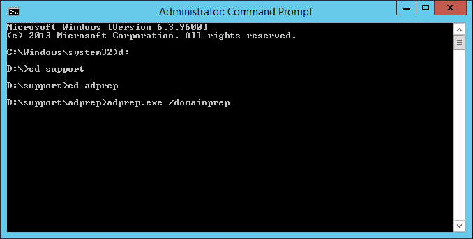 So, again, we open our administrator command prompt and run theย domainprep command.