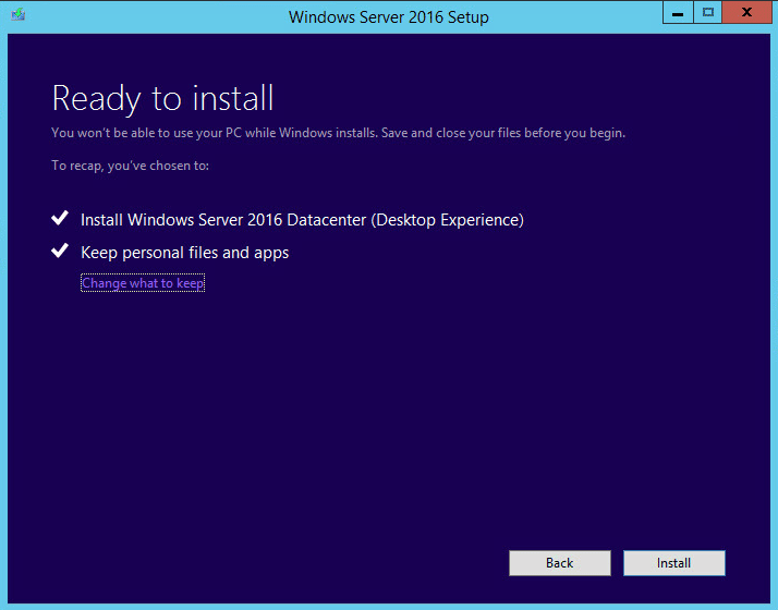An in place upgrade of a domain controller may not be something you want to do. ย Especially if you are looking at upgrading physical hardware as older hardware may not be supported with Windows Server 2016. ย Be sure to check your OEM to make sure of compatibility. ย As we have shown, however, if you want to Upgrade Windows Server 2012 R2 Domain Controller to Windows Server 2016, this is definitely doable. ย It is great to see the upgrade installer recognize that we had not ran forest or domainprep as of yet and wouldn’t allow the installer to move forward until we did.