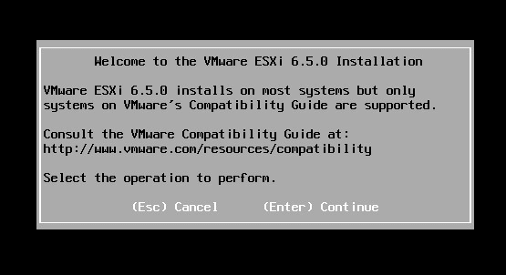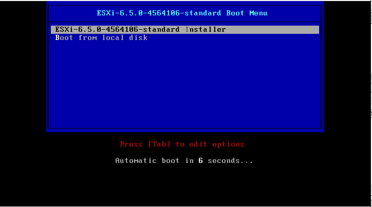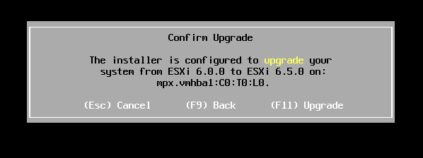 Below is the process of booting from the downloaded ESXi 6.5 ISO and performing the upgrade process.