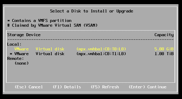 Here we select the disk that contains our existing ESXi 6.0 install.