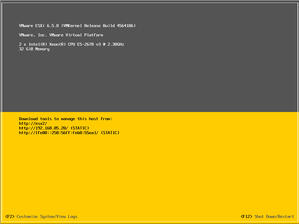 After a reboot, the host boots up andย displays that it is now on version 6.5 Build 4564106.