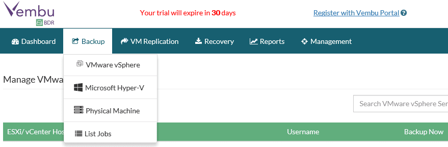 The heart of the Vembu BDR Suite is Vembu VMBackup.ย Vembuโs VMBackup is a DR solution that spans hypervisors and is extremely scalable.ย Supporting both VMware and Microsoft Hyper-V environments it covers the realm of vendors here very effectively.ย Backups from both hypervisors are agentless and they provide application aware processing.