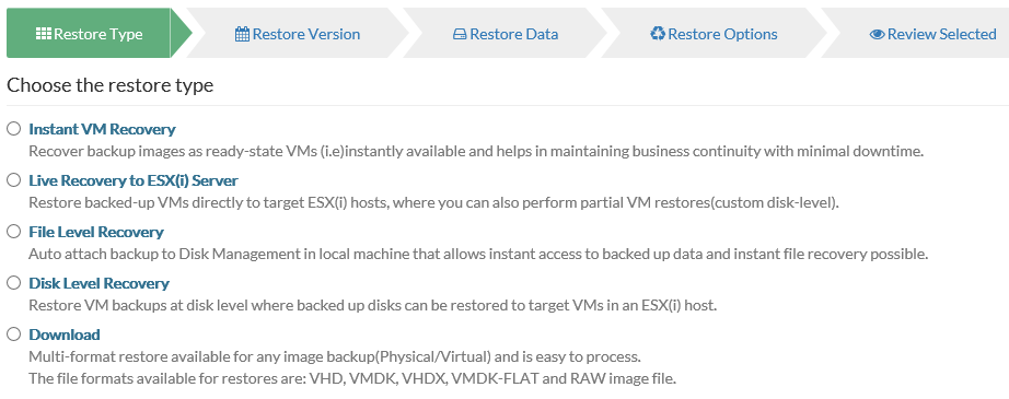 - Quick VM recovery that is built in allows VMs to quickly be recovered by launching straight from the backup files on your ESXi, Hyper-V, or other hypervisor