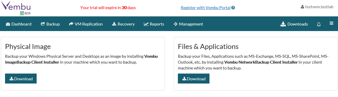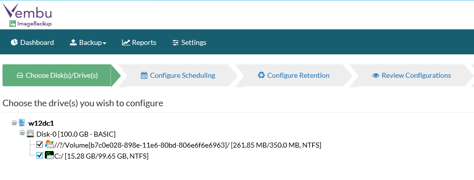 After installing the Vembu ImageBackup software, you setup your backup jobs through a web console which is very intuitive.ย It walks you through getting your first image backup of your physical machine.