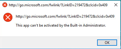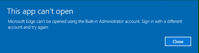 As you can see below, we get the normal default behavior of Microsoft Edge saying the site can’t be opened using the built-in administrator account.