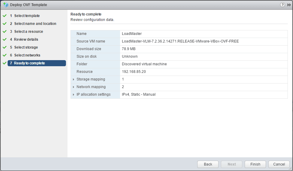 Deploying the Kemp Virtual load balancer appliance is as simple as deploying the OVF template in vCenter.