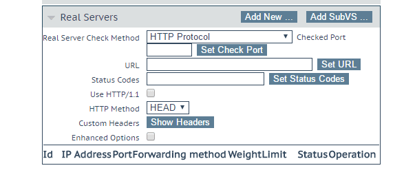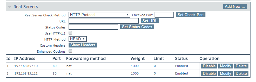 The Real Servers configuration section allows you to enter the information for the real servers (ip addresses, etc).  Click the Add New button.