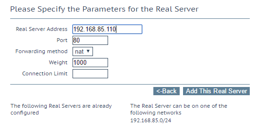We enter the Real Server Address here and port.