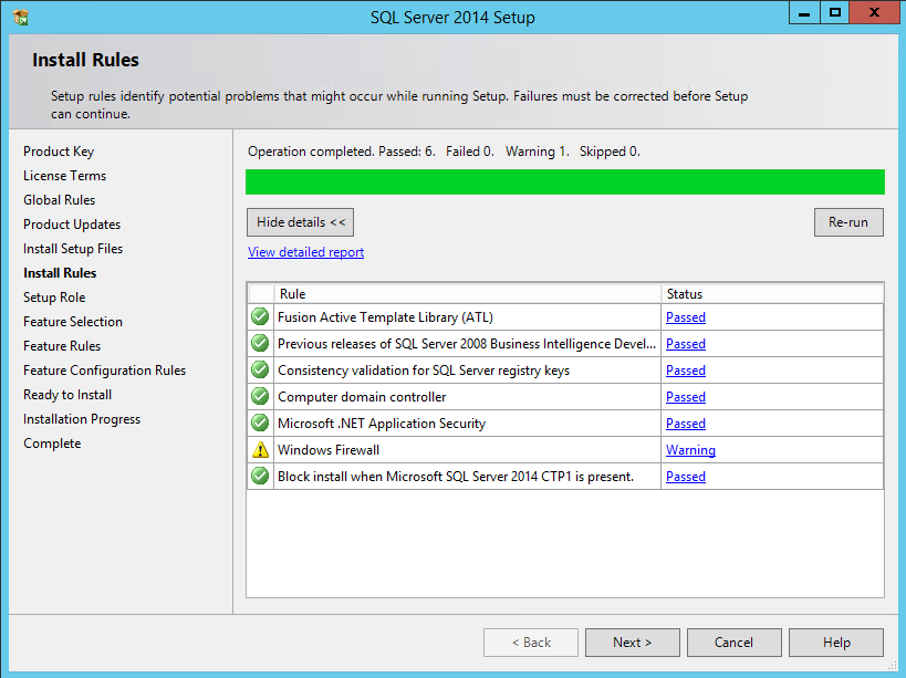 Here we see everything checks out except Windows firewall, but this is expected as we don’t have any exceptions as of yet for the SQL ports and connectivity.