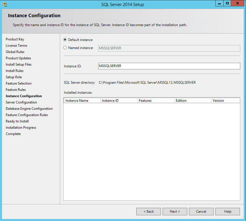 Since this is the only SQL instance that is configured on this SQL server, the default instance is left selected here. ย No need to change it if not needed.