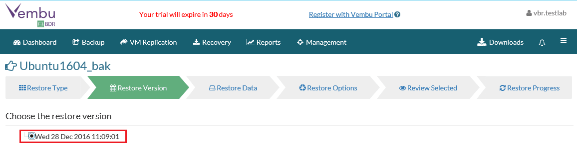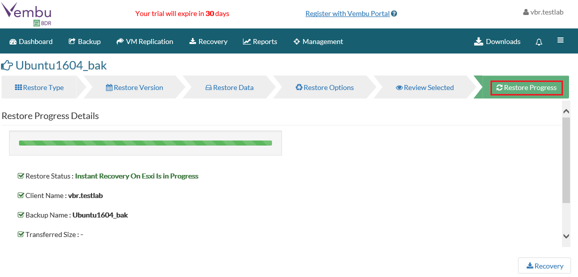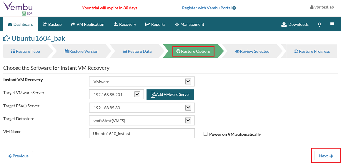 When disaster strikes and business operations are interrupted by either software or infrastructure failure, the RTO (recovery time objective) or quite simply “how long does it take to recover?” time is crucial. Vembu BDR Suite provides a complete approach to both protecting and restoring business operations in the event of a minor or major software/infrastructure disaster. One of the great features that I really like in Vembu BDR Suite is the Quick VM recovery. This feature allows “instant” VM recovery by reading directly from the compressed and encrypted backup data contained in the Vembu BDR Suite storage targets. The obvious advantage of the quick “instant” recovery is the VM is reading directly from the backup file, so you don’t have to first restore the VM data to the target location with the resulting wait time involved. Vembu Quick VM Recovery Ensures Business Continuity with Minimal Downtime