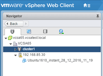 After the very quick restore of the VM using the Instant VM recovery process, we are powering on our restored VM.