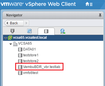 Interestingly, we now see the VembuBDR_<Vembu_ID> datastore listed under our datastores in vCenter. This new volume is an NFS volume pointed back to our BDR backup server.