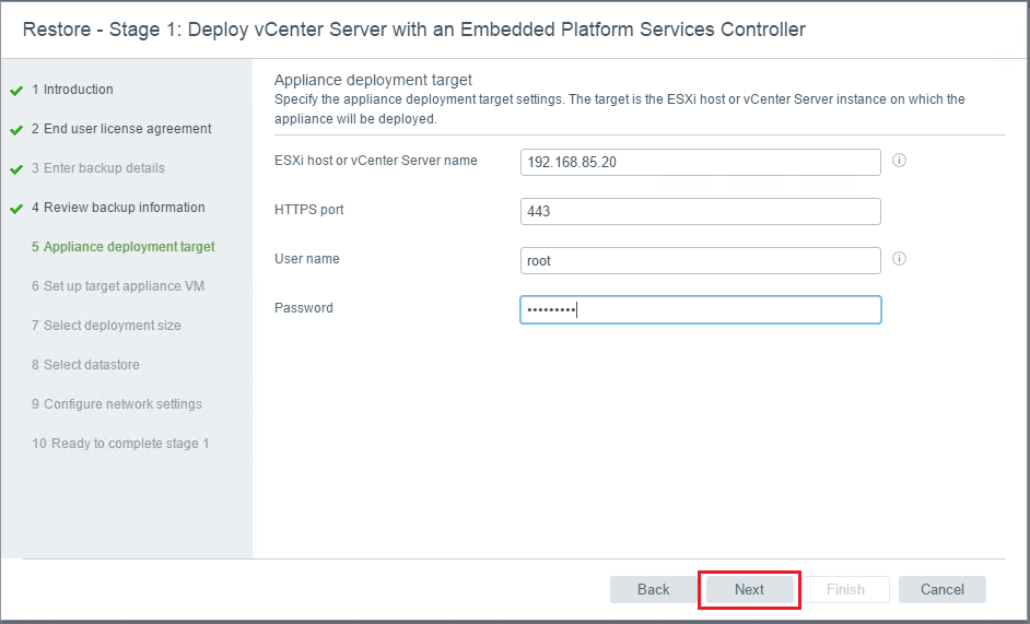 This is an interesting restore approach. ย Basically, we have toย deploy a brand new vCenter appliance and then restore the configuration to that new appliance.