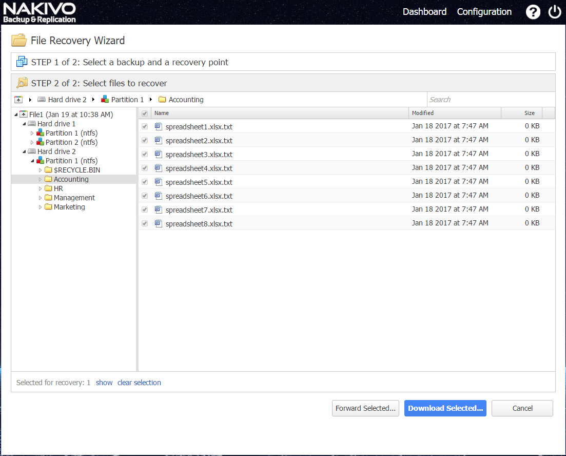 What if in the case the entire server is not corrupted (operating system and configuration is unaffected and intact) – only specific files were encrypted by Ransomware and rendered unusable? We can then use the Instant File Recovery to retrieve the specific files that need to be restored, and restore them.