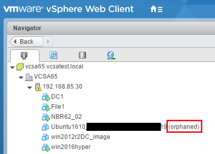 As you can see below in the web client, I had an Ubuntu VM showing as “orphaned” and I couldn’t remove it from the web client.