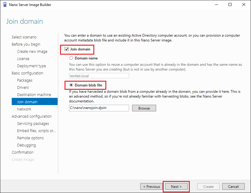 djoin /provision /domain testlab.local /machine NANO16 /savefile c:nanojoin.djoin
