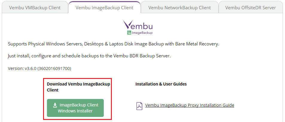 The first thing we need to do is navigate to the Backup >> Physical Machine menu.ย We will be taken to the download link for the Vembu ImageBackup Client download.ย We then download a copy of the ImageBackup Client.
