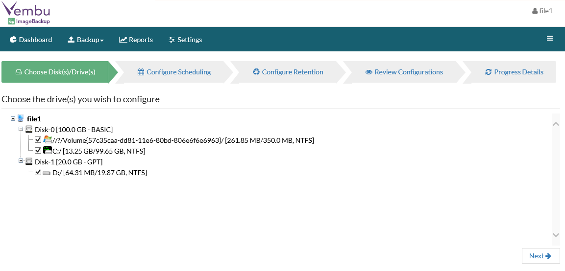 The nice thing about the ImageBackup Client is that we are targeting our Vembu Backup repository with all the benefits of compression and deduplication that exist there.