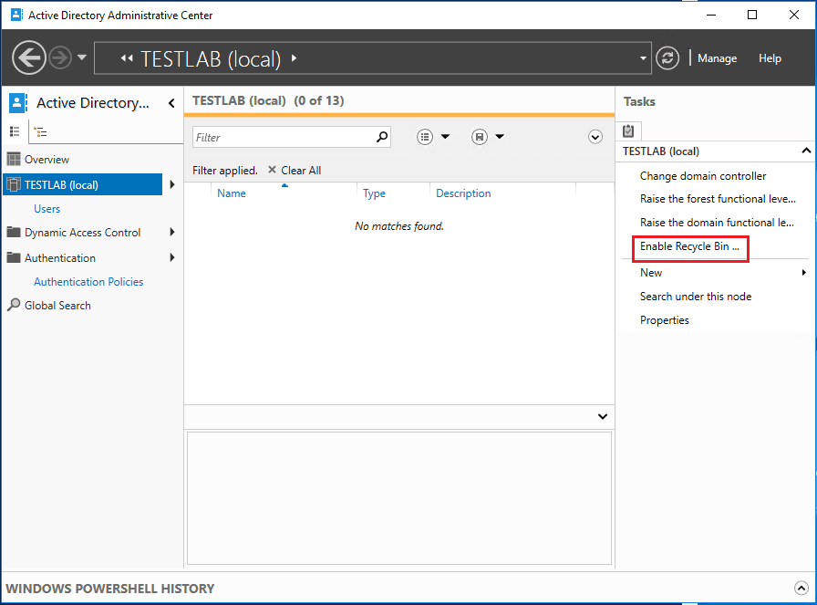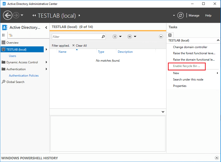 Enable Windows Server 2016 Active Directory Recycle Bin