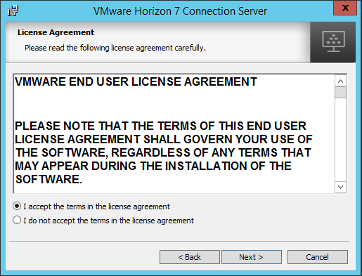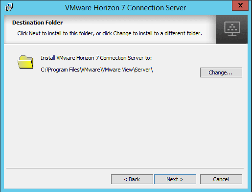 The installation platform I am using is a Windows Server 2012 R2 server, updated, etc. After copying over the Connection Server installation files, simply run the .exe file to begin installation.