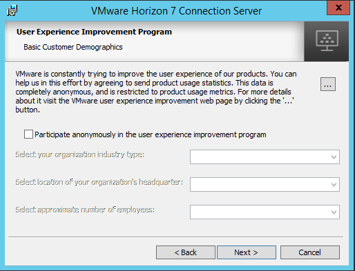 We can choose to participate in the experience improvement program and can make that choice on the below screen.