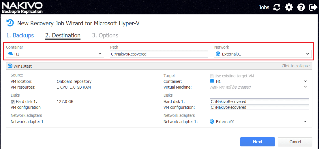 Restoring Hyper-V VMs with Nakivo Backup and Replication V7