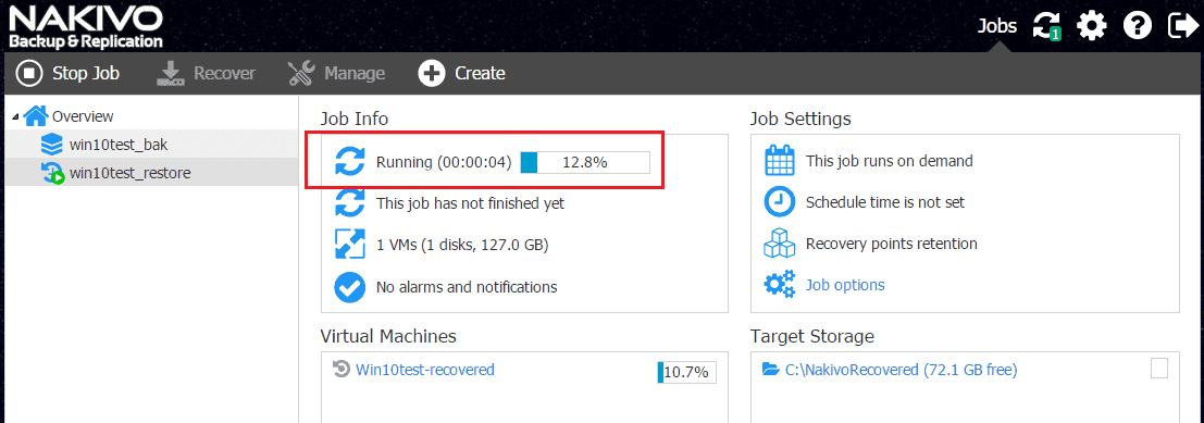 Let’s take a look at a couple of methods to restore your Hyper-V VM with Nakivo – full VM restore and file restore.
