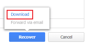 When we click theย Recover button, we have a popup that gives us the option to either Download orย Forward via email. ย The email option is greyed out for me as in my lab environment I didn’t have email configured.