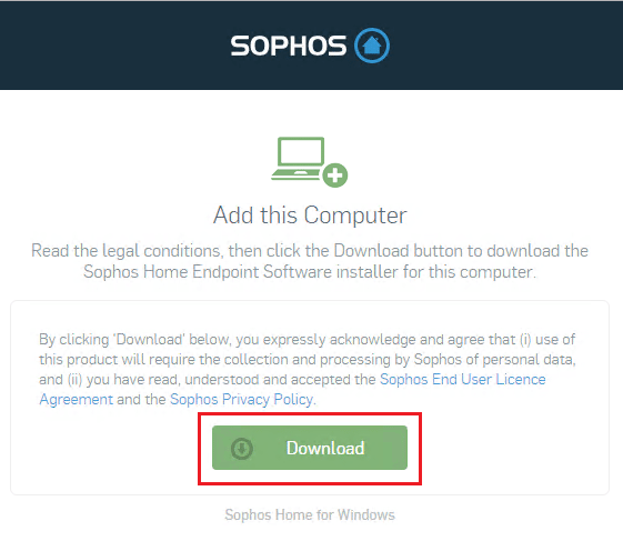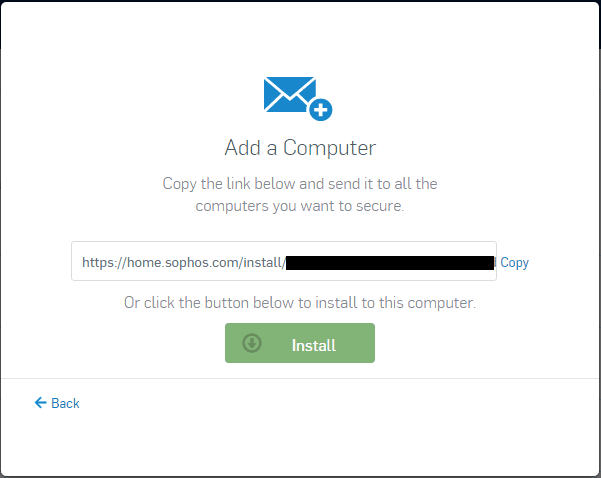 What really shines with the Sophos Home Edition is the cloud console/dashboard. You don’t have to sneakernet an install around to various computers although you could do that. On each machine that you want to protect, you simply login to your Sophos Home account and select the “Add Device” button which brings up the “Add a Computer” Dialog box. This allows you to see a customized link that you can copy to each computer, or you can simply click the “Install” button to download the installation file to install on your computer.