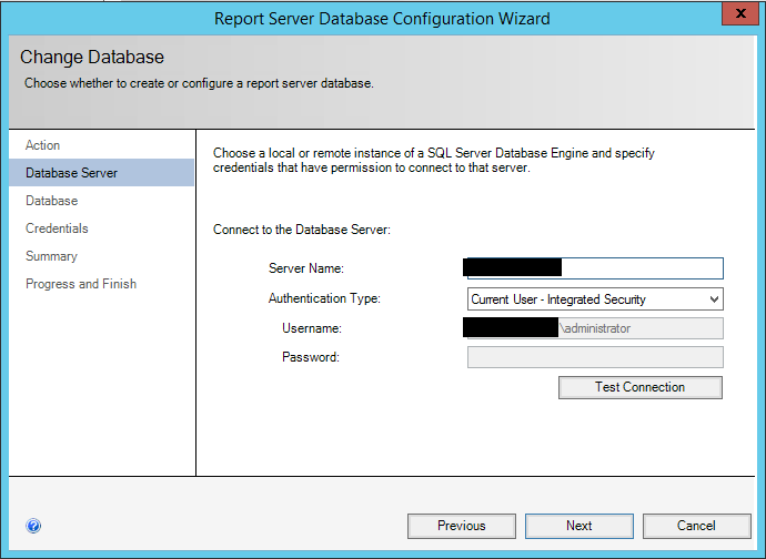 The workaround is fairly simple. ย While leaving the SQL Server 2016 Upgrade process still running, launch theย Reporting Services Configuration Manager. ย In my case, the problem is an incomplete Reporting Services database setup. ย Connect to your SQL server.