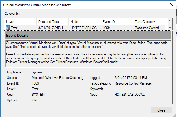 I wanted to write up a quick end of the week post that had me scratching my head for a bit in a Windows Server 2016 Hyper-V cluster lab I had built up. When powering up a virtual machine in the cluster, the virtual machine failed to start with the error Not enough storage is available to complete this operation. Well, of course the first thing I started taking a look at was the space available on my shared storage. However, it turned out to be something completely different.  Let’s take a look at the error with Windows Server 2016 Hyper-V Cluster Not Enough Storage Space Available.