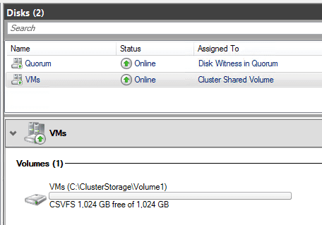 However, the perplexing part for me was the clustered shared volume that I had setup my VM storage on had plenty of free space. In fact, it was completely clean as this was a new cluster build with a clean iSCSI LUN presented. Thinking there could have been something going on with the volume, I even removed it from the cluster, reformatted it and brought it back into the cluster. However, the results were the same. Still, the volume was showing up correctly with plenty of free space available.