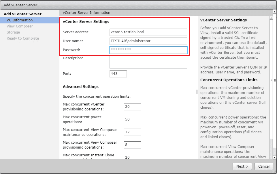In continuing our setup of the View Connection Server, let’s take a look at how to setup VMware Horizon View Connection Server vCenter Connection. The vCenter Server connection provides the connection server hooks into vCenter as well as gives us the ability to define our Composer server as well.