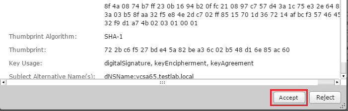 At the bottom of the “view certificate” window, you canย Accept the certificate.
