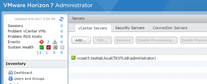 Part 3 – Setup VMware Horizon View Connection Server vCenter Connection