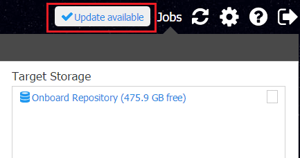 You can easily see that you have an update pending as you see the Update available button in the upper right hand corner of the Nakivo Backup & Replication v7 interface. Click the Update available button.