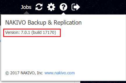 Once the update is finished, we can log back into the Web UI and we will can now check our version to make sure we are now running the current version contained in the update. Click the โquestion markโ button to see the version information. As we see below, we now are running the current version 7.0.1 (build 17170).