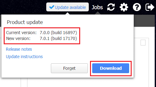 The Product update box is extremely helpful and full of information about the update right at your fingertips including release notes and update instructions. Also, you handily see the current version of the product and the New version that is available. The Download button is a direct link that takes you to the update page to pull down the correct update.