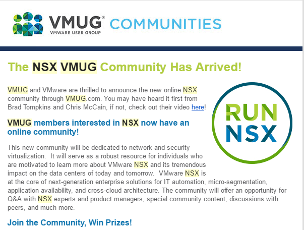 With the formation of the NSX community, VMUG is giving away training and exam vouchers and other goodies to jump start the community formation, so a great time to join and start winning prizes!
