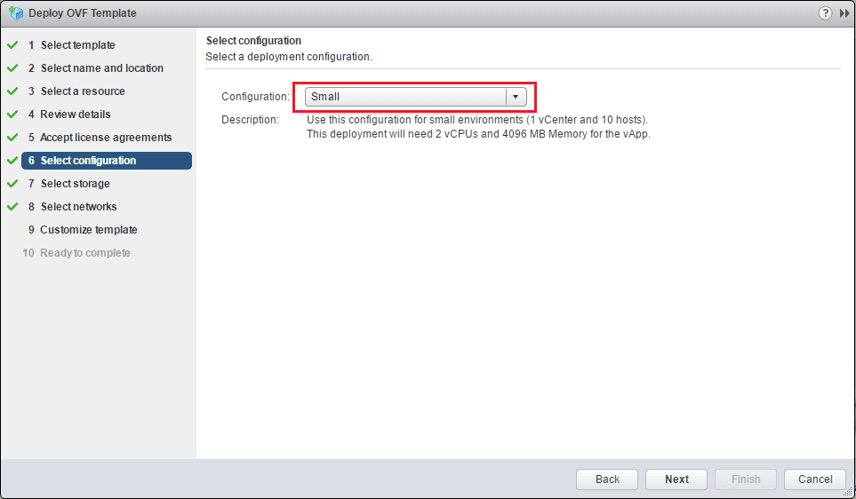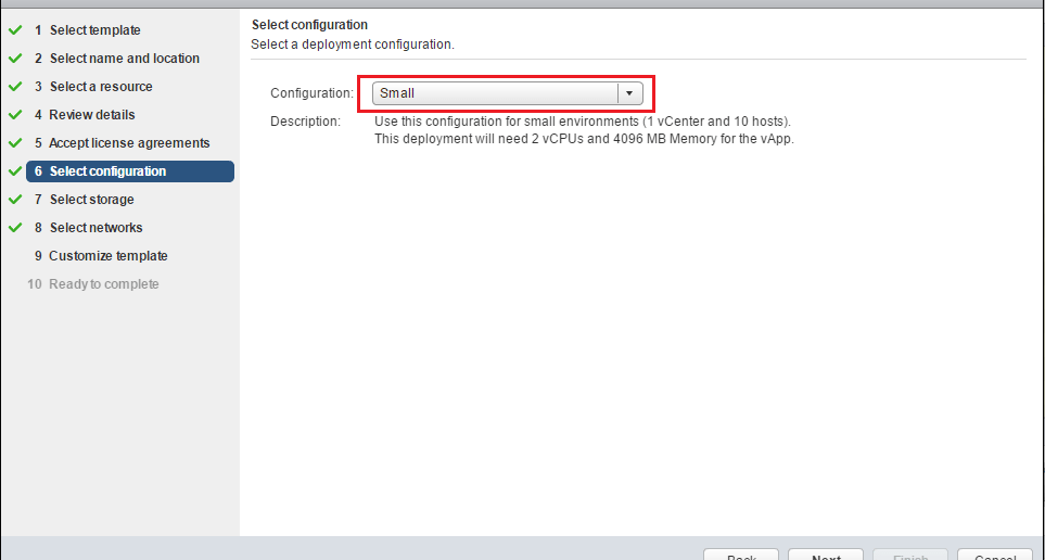 The deployment of the product is super easy and intuitive. ย The relatively small Runecast OVA appliance makes it super easy and intuitive toย import and spin up the virtual appliance that runs Runecast Analyzer. ย Below the Deploy OVF Template wizard is the standard process that you would expect. ย However, I wanted to highlight an area below. ย In theย select configuration you can size the OVA template according to the size of your environment. ย The description details supplied by Runecast during the install are as follows: