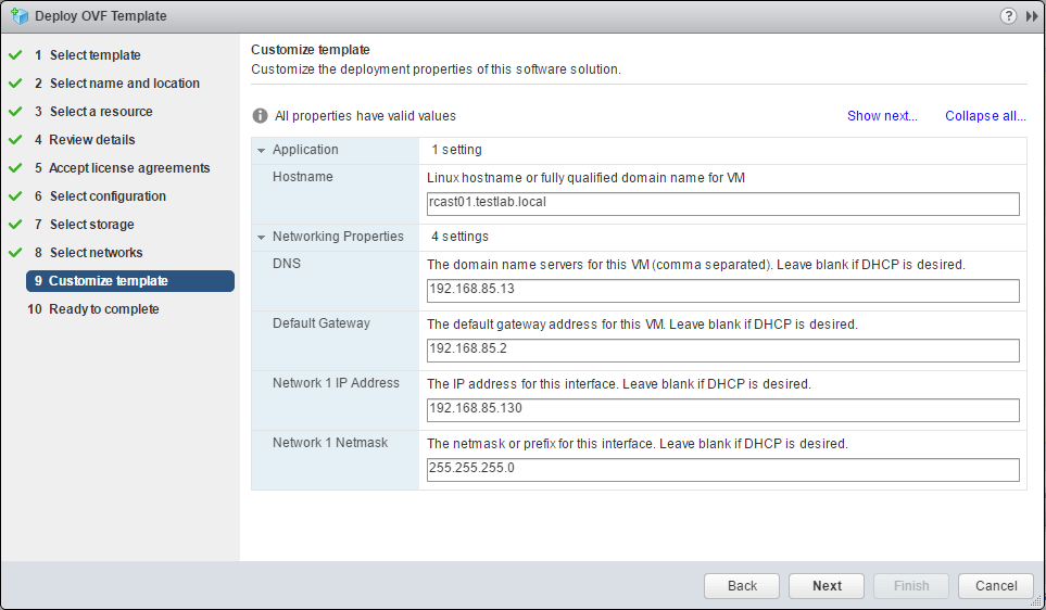 Of course, important is our network configuration. ย During the wizard, we can customize the hostname, DNS, network address, etc.