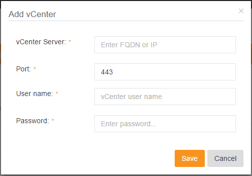 Under theย Settings sectionย vCenter Connections we can click theย Add vCenter button to add the IP/DNS name of our vCenter Server.
