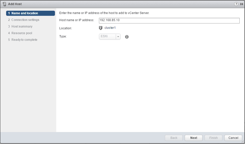 This launches theย Add Hostย wizard. ย Here it is basically a next, next, finish operation. ย But, we have to do this for all hosts we add into the cluster.