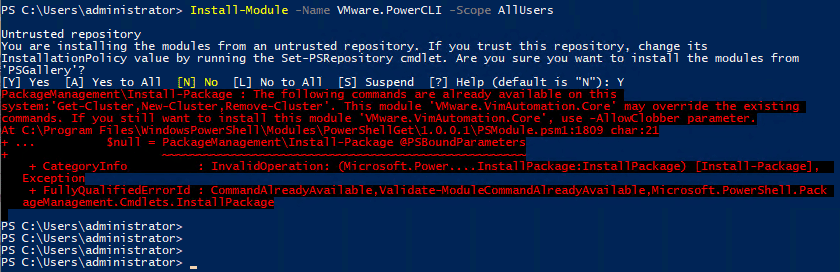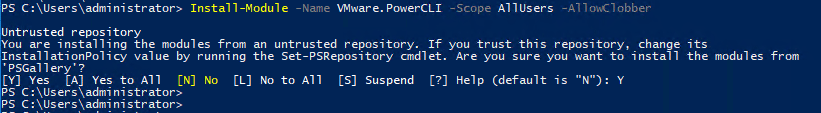 Install-Module -Name VMware.PowerCLI -Scope AllUsers -AllowClobber