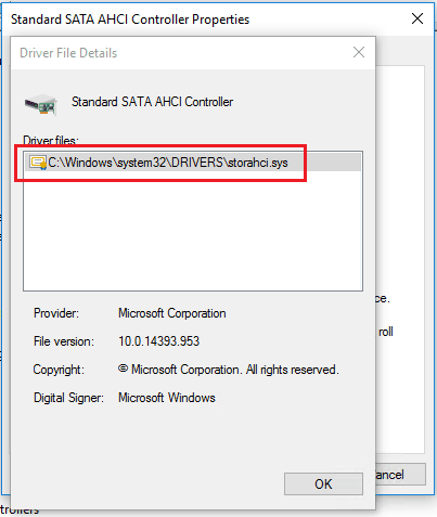 - If you see โStorAHCI.sysโ in the list, you are running the inbox driver.
