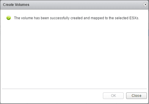 Theย create volumes dialog box pops up. ย Here we choose a name for the ScaleIO volume, volume size, volume provisioning, RAM Read Cache. ย Also, we need to choose toย Map volume to ESXs. ย Below that, we select the ESXi servers we want to map the volume to.